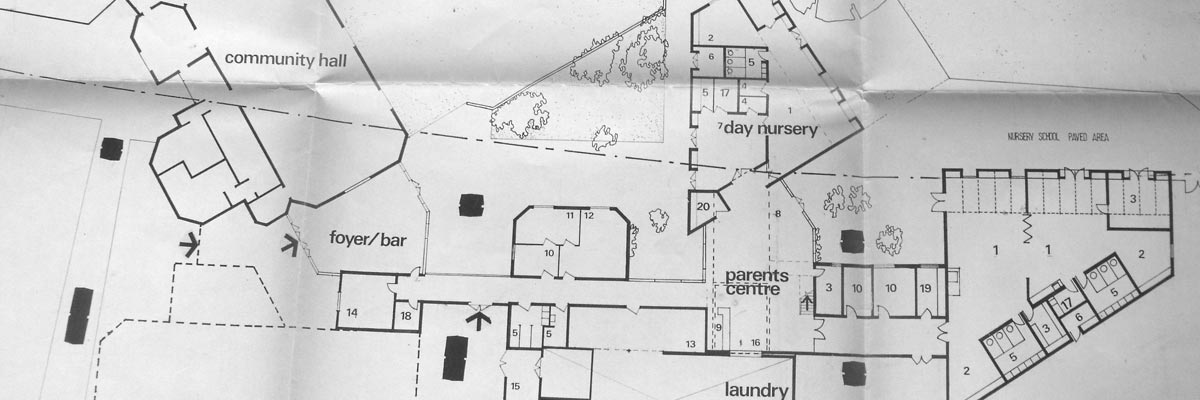 | Nursery, workshops, community hall, laundry - vision for community space in 1970 |