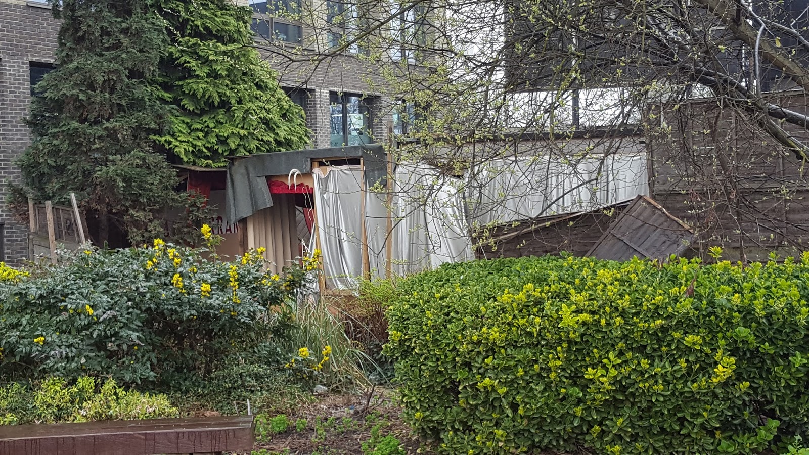 Do you see this? Right next to one of our newest most expensive developments, still being sold, homeless people have built a little bivouac out of waste. Though they aren't counted as homeless, as they have a roof. I know this because I went out with the wonderful Street Sleepers team in November, and they told me so. These people have been there for some time. Leave them.