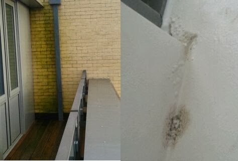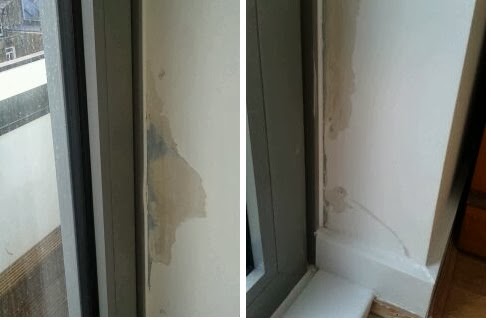 - bad damp and peeling paintwork due to 'missing mastic' on the outside of the window-frame. Given that the resident had moved in barely three months previously, this was frankly appalling.